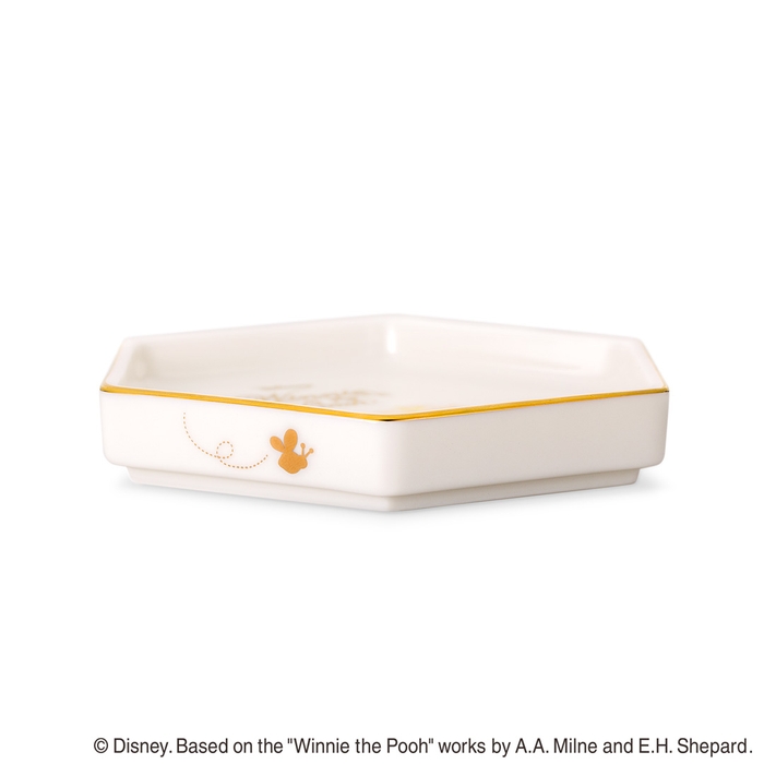 プーさんとピグレットのやさしい表情や、あたたかみのあるカラーにほっとするようなデザイン。側面にさりげなく描かれたみつばちも愛らしいアクセントに。本金の装飾が上品な印象を醸し出しています。お気に入りのジュエリーを飾ったり、家事などでジュエリーを外す時に使ったり…。お部屋のインテリアとしても素敵です。