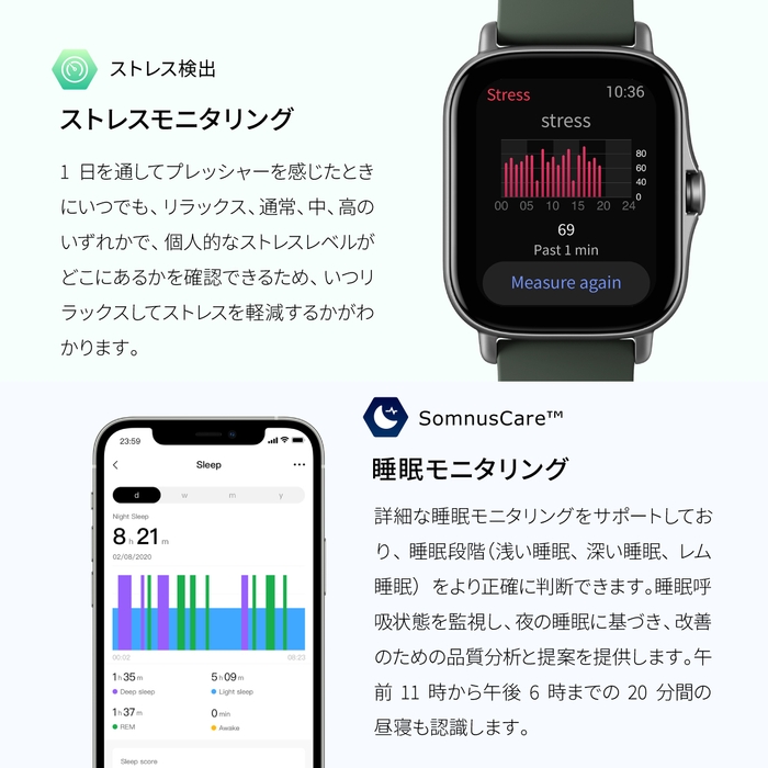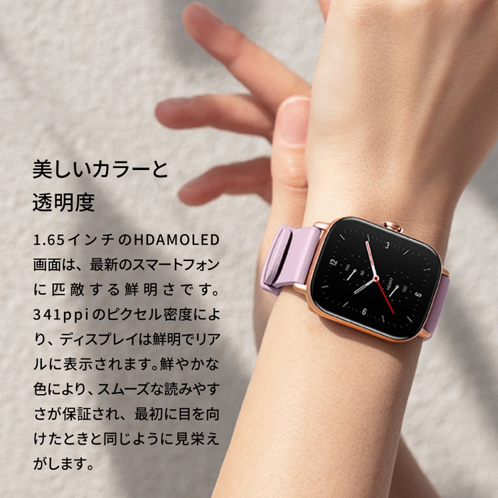 最新のフィットネストラッキング機能と超薄型でファッショナブルなデザインを特徴とするAmazfit GTS 2、今日のアクティブな消費者のためのスタイルと健康の完璧なブレンドを表し、また、余分な長いバッテリー寿命と妥協のないエレガンスを提供します。