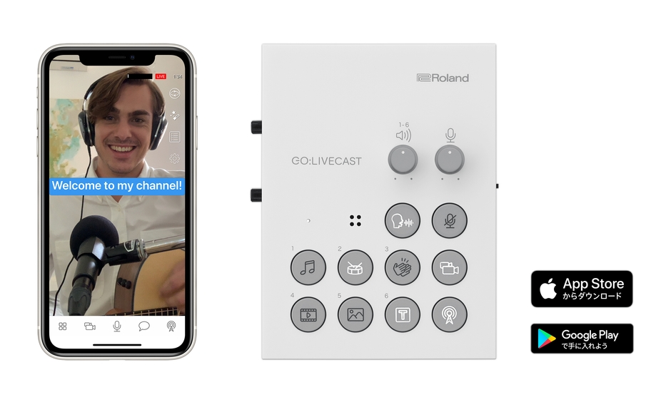 ローランド株式会社は、簡単な操作でスマートフォンからのライブ配信に多彩な演出を加えて、動画のクオリティを上げることができる、アプリとコントローラーのセット『GO:LIVECAST』(ゴーライブキャスト)を、2020年1月25日(土)に発売します。