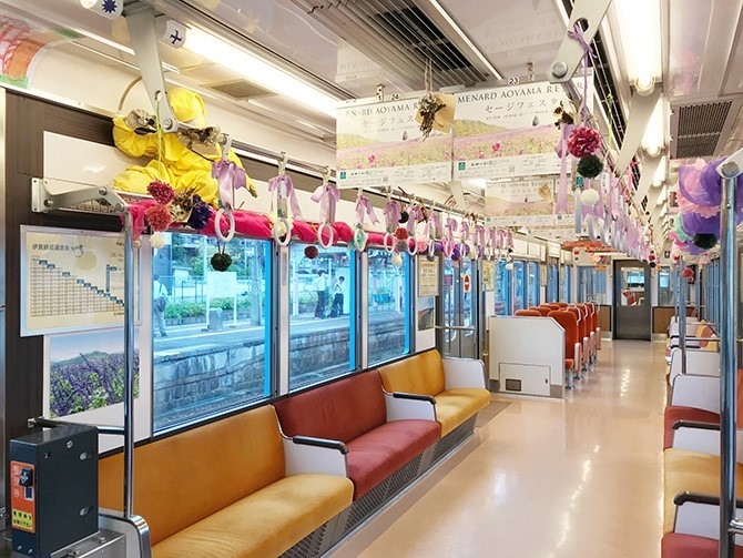 「忍者列車」の伊賀鉄道と秋の花「セージ」と「ハーブ」のメナード青山リゾートがタイアップし、地域の活性化と観光スポットの拠点づくりに向けて取り組む、癒し効果抜群の香りいっぱいの列車を運行します。