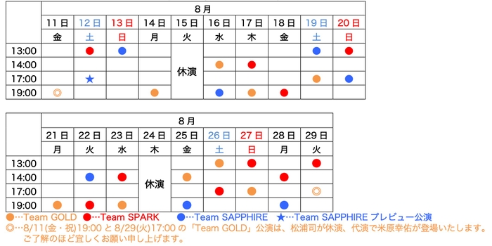 ★Team SAPPHIREプレビュー公演(8月12日(土)17:00公演) 9,500円