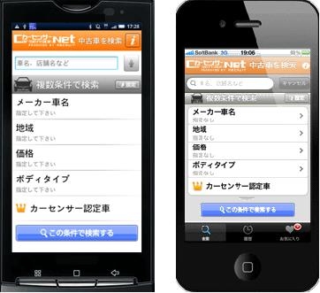 ※「カーセンサー for iPhone」はApp Storeから、「カーセンサー for Android」はAndroidマーケットからダウンロードいただけます。