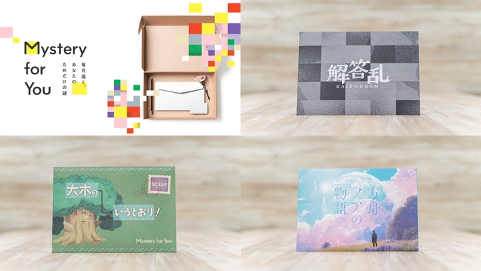 2023年9月中に本サービスに加入いただいた方にも、上記のラインナップからあなたにぴったりの「謎」をお届けいたします。あなたのお家時間にワクワクをお届けする『Mystery for You』を、ぜひこの機会にお楽しみください。