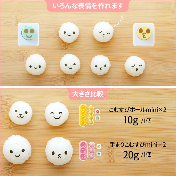ギュッとしてポンっ!ひと口サイズのまん丸なおにぎりがカンタンに作れちゃう!お弁当はもちろん、ランチプレートにもオススメです☆「手まりこむすびmini×2」