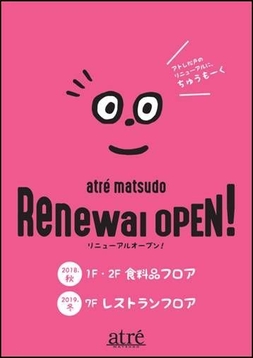 株式会社アトレ(本社:東京都渋谷区、代表取締役社長:一ノ瀬 俊郎)は、2018年8月から2019年春の期間中、アトレ松戸の1・2Fの食料品フロア一部区画と、7Fレストランフロア、8Fサービスフロア全面を、4期にわたってリニューアルいたします。