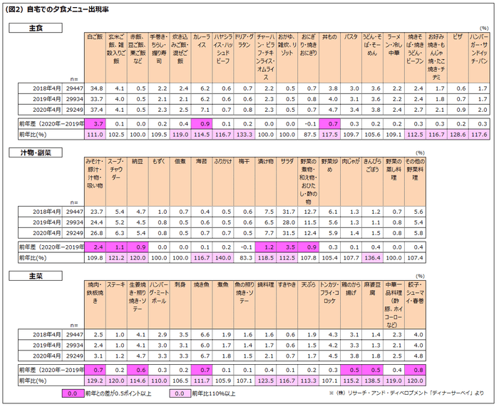 今回は、第二弾として非常事態宣言による外出自粛の影響がもたらす夕食メニューの変化についてレポートします。