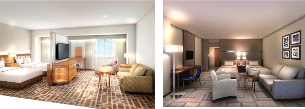 また客室はルームタイプごとに4つのデザインテーマを設定し(写真(1)(2))、選べる楽しさとグレード付加価値を持たせます。