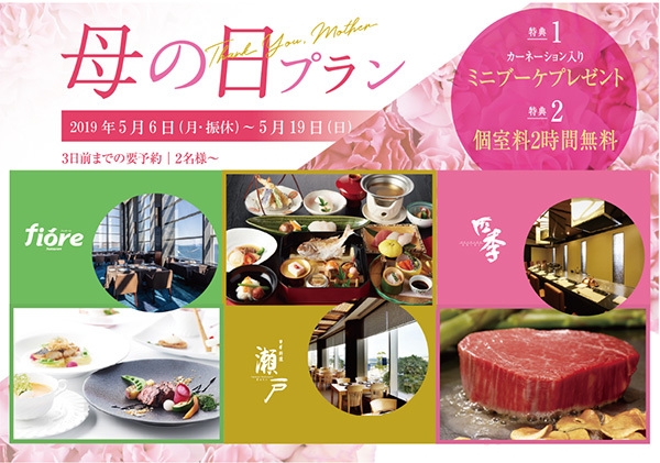 5月12日(日)は母の日!ホテルならではのおもてなしを お得な特典付き 母の日プランを販売 2019年5月6日(月・振休)より JRホテルクレメント高松にて