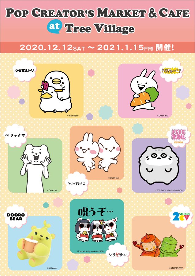 12月12日(土)より「POP CREATOR’S MARKET & CAFE at ツリービレッジ」に うるせぇトリ新商品とカフェメニュー登場!
