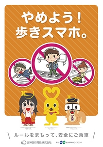 北神急行電鉄株式会社(代表取締役社長:辰馬秀彦)では 継続的に「歩きスマホの危険について」の啓発活動を行っています。この度、生活協同組合コープこうべと協力し、3月下旬から1年間、『やめよう!歩きスマホ。』と呼びかけるキャンペーンポスターを、谷上駅、北神急行電鉄車両の車内およびコープデイズ神戸北町店をはじめとする第四地区活動本部に該当するコープ各店舗に掲出いたします。