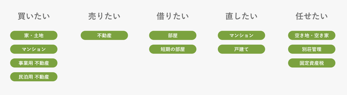 「クウカン不動産」では、お客様のあらゆる不動産ニーズに応えるため、以下の4つのサービスを主軸に事業を展開します。
