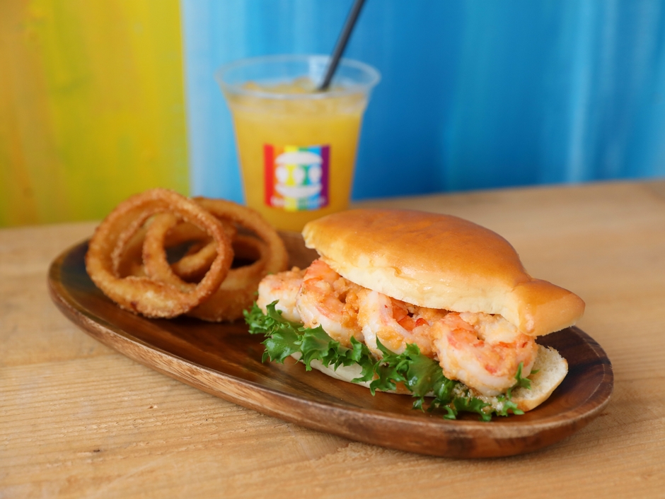 『お魚屋さんのトトバーガー』で話題のお店が初出展。サンドされるガーリック味のぷりぷりのエビは鮮魚店プロデュースならではの新鮮食材、魚の形のバンズは洒落っ気たっぷりです。