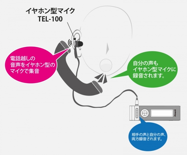 さらにオプション品の通話録音用イヤホン型マイクを使えばスマホや携帯電話、一般電話などあらゆる電話の通話録音が可能です。