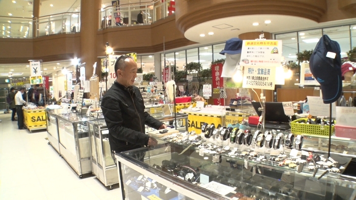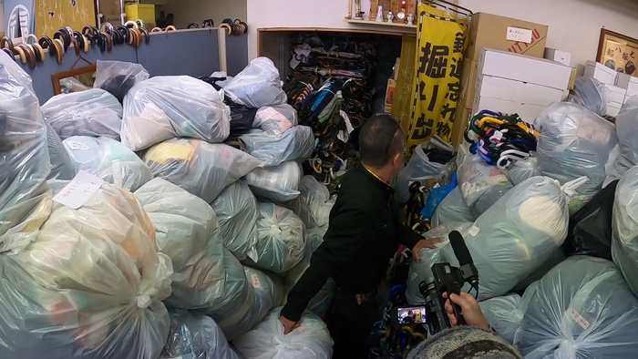 歩くスペースがないほどモノがぎっしり詰まったリサイクルショップの店内。忘れ物ナンバーワンの傘をはじめ、キーケース、小銭入れ、未使用の財布など数万点の忘れ物をジャンルごとに管理し、高値がつく“宝物”を探します。