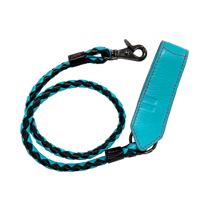 財布の落下防止、盗難防止にも役立つミクカラーの本革ウォレットコード。