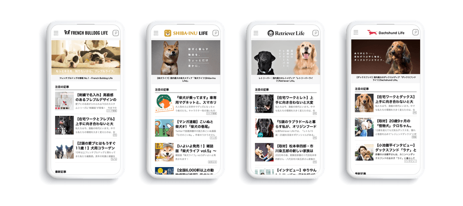 ひと言に「犬」といっても、チワワのような小さい犬もいればレトリーバーのような大きい犬までさまざまであり、性格やカラダの特徴などは『犬種』によって全く異なるため、「dot LIFE」では犬種特化型だからこそ可能な、オーナーと愛犬の悩みにしっかり応えられるメディアを複数展開。高まる「犬種別の情報ニーズ」に地道に応え続け、おかげさまで月間1,500万PV・利用者400万人を超えるなど、メディアとして更に大きく成長を続けています。