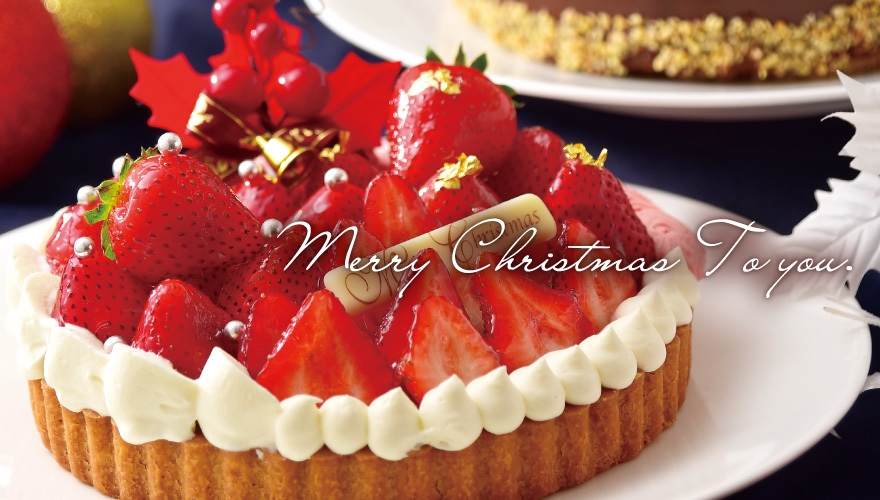 アーモンドを練り込んだふわふわのスポンジ生地に生クリームをデコレーションしたクリスマスだけのオリジナルケーキ