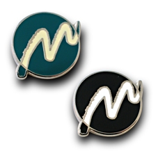 以前のロゴマークが円形の中に社名の一字「モ」であったところから、新しい社章は社長様自らが考案された円形の中に「M」の文字をデザイン化したもので、左端は下がり、右端は跳ね上がるという形に「山あり谷あり」という思いが込められているそうです。スーツのカラーやTPOに合わせて使い分けられるように、コーポレートカラーを利用した緑色ベースのものと礼装用の黒色ベースの2種類を製作。社員の方々への配布はこれからだそうですが、社長様の細やかな心遣いに、きっと社員の方も喜ばれることでしょう。
