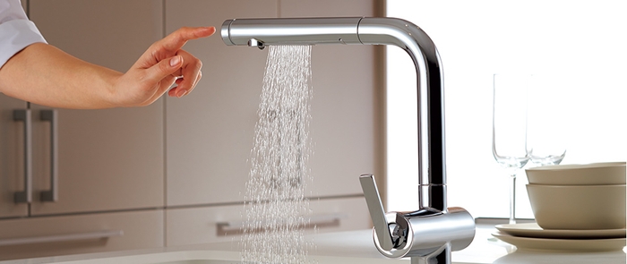 タッチスイッチだけで水が出せる便利なキッチン水ほうき水栓!