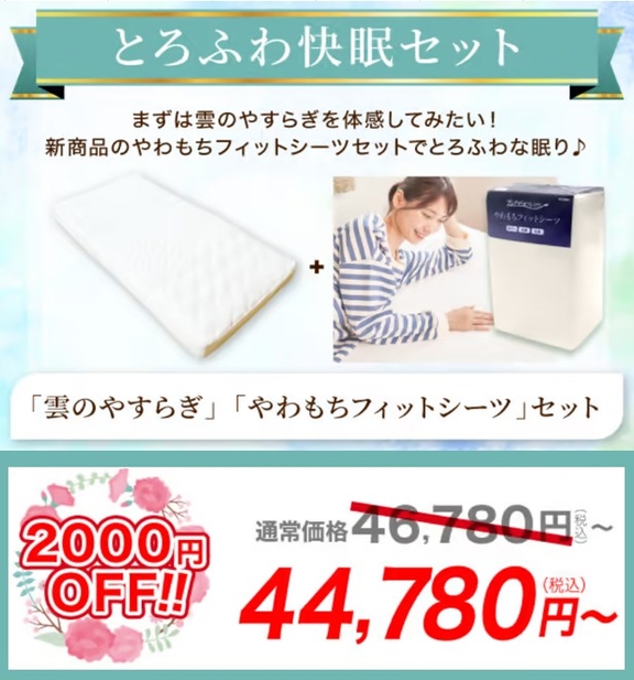 使い勝手だけでなく、肌触りにこだわった「シーツ」がセットになったとろふわ快眠セット。とろけるようなリラックスできる感触で毎日の眠りを心地よくします。