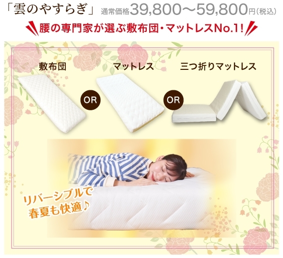 【父の日セール】お父さんの体を気遣った健康グッズが勢揃い!腰に優しい敷布団・マットレスで大人気「雲のやすらぎ」より開催。