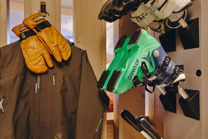 当客室には、滑走後すぐにスキーブーツを乾かせるよう、ブーツヒーターを設置しました。乾燥室の混雑を気にせず、しっかりと乾かすことができます。また、入り口付近には、板を置いたり、ウエアやグローブ、ヘルメットなどを掛けたりするスペースもあります。
