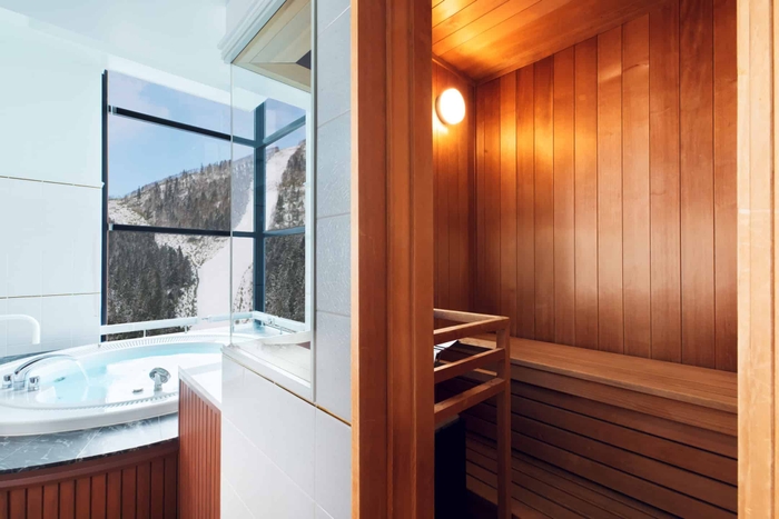 6 スキーの後は、客室の展望ジェットバスとサウナでゆっくり過ごす
