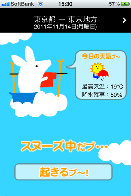 全国で毎週月曜日に発行されている無料求人誌『タウンワーク』のキャラクターでおなじみ、ジョブーブのめざまし機能付き天気予報アプリができました!