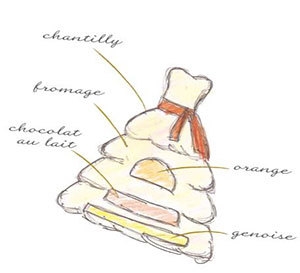 ■商品説明 ケーキの中は、ジェノワーズ、ミルクチョコのムースにマンダリンのクーリーを忍ばせたレアチーズケーキ。チョコで模ったティアラやチャームは必見。高さ10センチほど