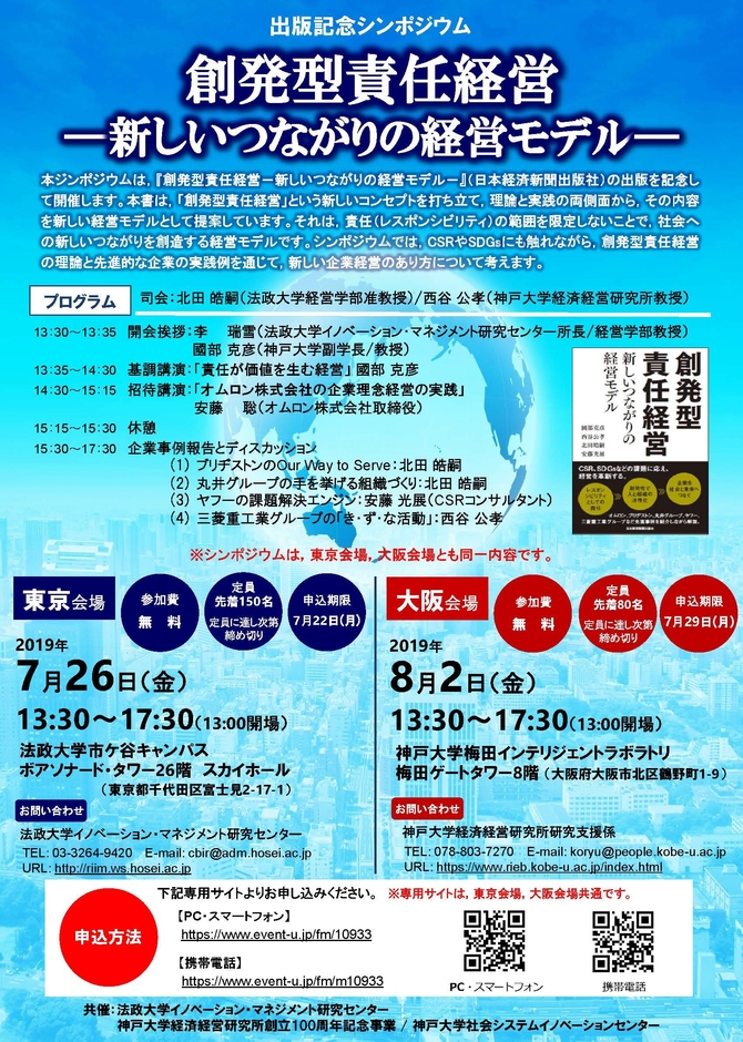 法政大学イノベーション・マネジメント研究センター シンポジウム 「創発型責任経営―新しいつながりの経営モデル―」 2019年7月26日(金)に市ケ谷キャンパスにて開催!