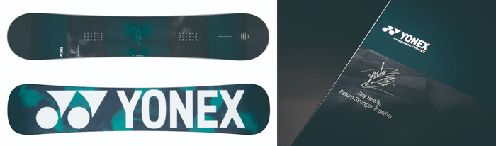これを記念して発売する特別仕様のボードは、戸塚自らデザインを提案。デッキ面には「Stay Ready, Return Stronger Together(コロナ禍の世の中でも一緒に強くなろう)」という戸塚のメッセージと直筆サイン、ソール面にはチームヨネックスのみの使用が認められる特大YONEXロゴがプリントされています。