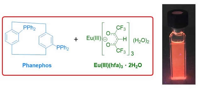 ◆論文名・・・“Complexes of Eu(III)(hfa)3 with a planar chiral P(III) ligand (Phanephos):solvent-sensitive sign inversion of circularly polarised luminescence”