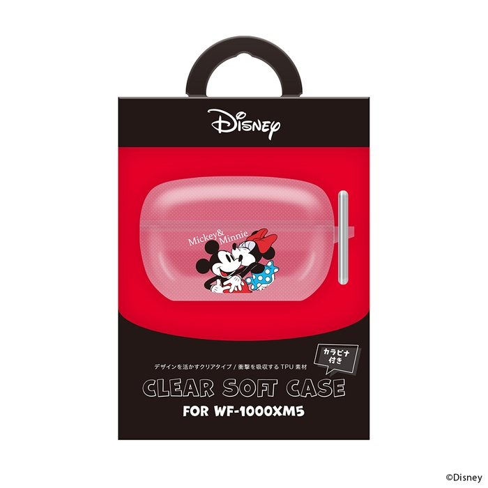 ディズニーキャラクター「ミッキー&ミニー」デザインのしなやかで柔軟性に優れたTPU素材を使用したWF-1000XM5用 クリアソフトケースです。透明なクリアデザインでWF-1000XM5本体の美しさを最大限に活かします。しなやかで柔軟性に優れたTPU素材でキズや汚れからしっかり保護します。ケースを装着したままケーブルでの充電はもちろんワイヤレス充電も可能です。使い勝手の良いカラビナリング付きで持ち運びにも便利です。