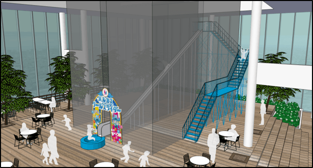 「ハルカスクールスライダー」は7月中旬から始まる、本格的な夏のお出かけシーズンに合わせ、特にお子様にお楽しみいただけるよう企画したもので、「ハルカス300」の58階“天空庭園”の西側にある通称「ツインタワー※」のすき間、幅約60cmの空間に設置し、その空間の高さ約7mから屋外空間に滑り出る爽快感を楽しんでいただくアトラクションです。