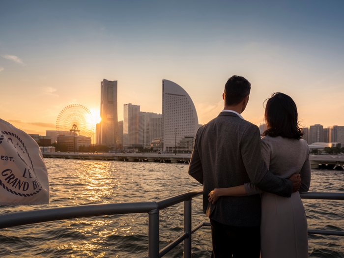 ホテル専用クルーズ船 「ル・グラン・ブルー」をお2人だけのために運航するプライベートクルーズは、InterContinental Yokohama Pier 8にご宿泊いただくお客様だけの贅沢なひとときです。夕暮れから夜へと美しさを競う冬の海の景色をサックスの音色とともに。