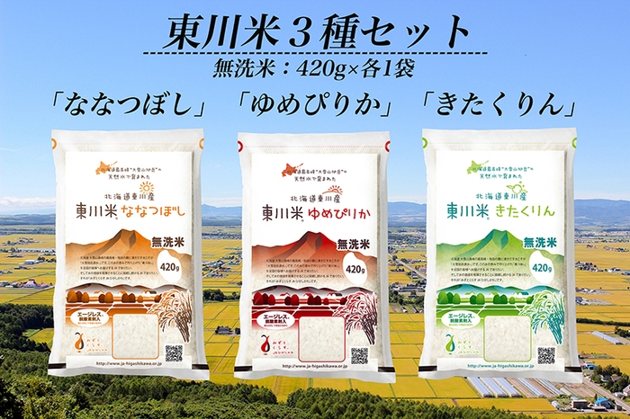 1.【無洗米】ゆめぴりか、ななつぼし、きたくりん:各420g×1袋