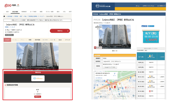 コロナ禍において、移動中の3密を回避するために「車移動」でのお出かけが増えております、「goo地図」でおでかけ先を探しながら、付近の駐車場を事前に予約することで、車移動をスムーズにし、現地で駐車場を探す時間や駐車場の列に並ぶ待ち時間を削減できます。
