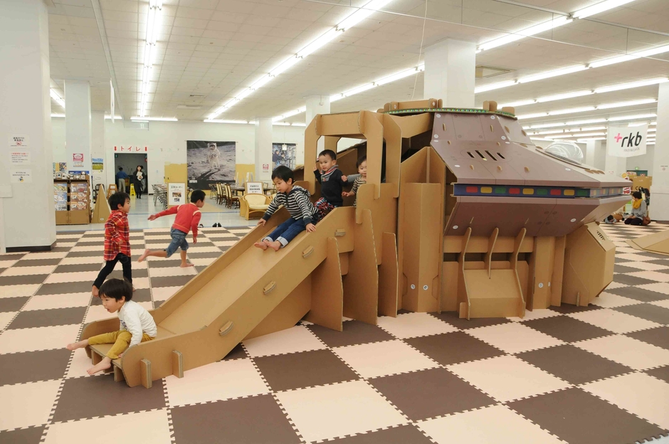 会場には、UFOすべり台や、ロケット電車など、体験できるダンボールアートが登場します。