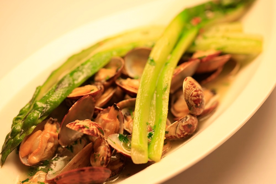 ディナー、ランチともに、甘さが一層引き立つ「新玉ねぎ」や、この時期驚くほどジューシーで肉厚な「アサリ」が活躍。