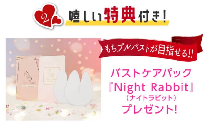 乾燥が続く冬のこの時期に、本キャンペーンでは保湿のスペシャルケアができるバストケアパック「ナイトラビット」もお届けいたします。