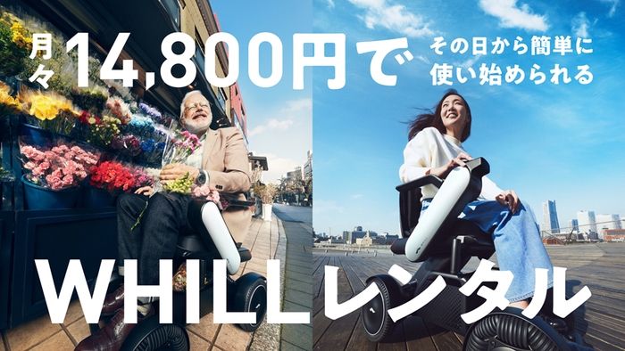 最新モデル「WHILL Model C2」は、WHILL社が開発・販売する、高いデザイン性と走行性能を持ち、分解による持ち運びができるほか、スマートフォンによる遠隔操作などの機能を搭載したパーソナルモビリティです。また、同社が展開するWHILLレンタルは、年齢や介護保険の有無にかかわらず、どなたでも簡単な手続きで、月々14,800円(非課税、送料別)でWHILL Model C2をレンタルし続けることができます。