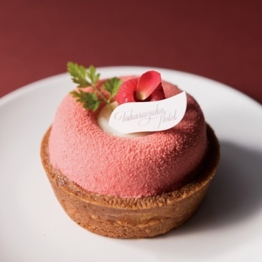 ローズ香るタルトに甘酸っぱいフランボワーズのムースを重ねて、ホワイトチョコのガナッシュで飾りつけ。