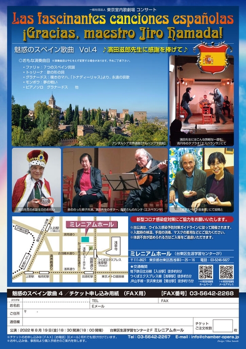 一般社団法人東京室内歌劇場『魅惑のスペイン歌曲Vol.4 ♪濱田滋郎先生に感謝を捧げて♪』