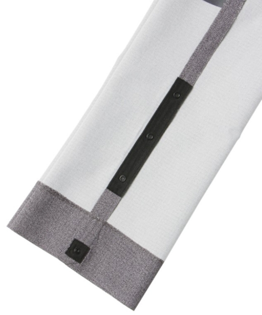 今回発売する「クイックタッチパンツ」には、裾の裏側にスナップボタンを取り付けており、裾先を内側へ折り返してボタンを留めることで誰でも簡単に裾上げをすることができます。裾の裏側のスナップボタンは縦に3㎝間隔で3つ取り付けており、パンツの丈(股下の長さ)は78㎝、75㎝、72㎝の3段階に調整できるようにしました。