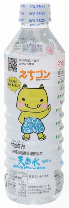 「柏崎市防災天然水500ml」は、パッケージに柏崎市の地元キャラクター「えちゴン」をあしらい、大人から子供まで親しみのあるデザインとしました。また、日常使いで気軽に備蓄できるローリングストックの方法や、わが家の防災計画、QRコードによる柏崎市ホームページの防災・減災お役立ち情報へのアクセスなどの情報を記載しており、日々の生活の中で防災・減災の意識を高めます。
