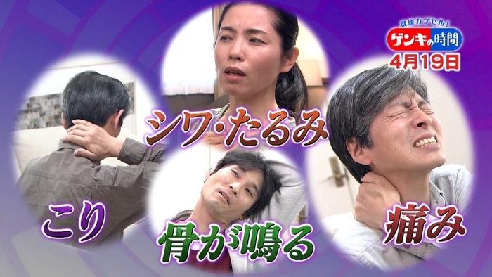 テレワークの方必見!首の痛みは大病のサイン!?自宅で出来る改善エクササイズにシワ・たるみ撃退法「クイーンラインエクササイズ」とは?4月19日(日)あさ7:00放送『健康カプセル!ゲンキの時間』