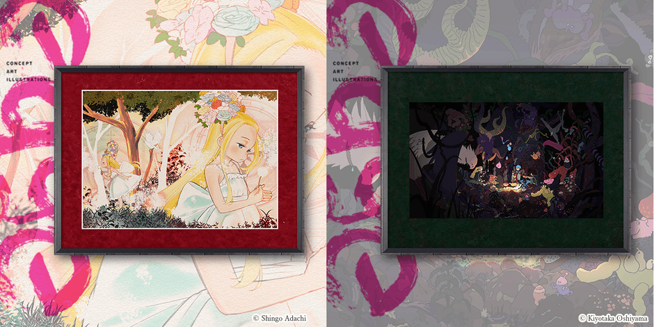 今回二人が書籍「edge2 concept magic」のために描き下ろしたイラストをDNP高精彩出力技術「プリモアート」で再現。通常の印刷では4色のインキ(CMYK)を使用しますが、「プリモアート」で10色のインキを使用することによって再現可能な色の領域を広げ、色やタッチを忠実に再現いたしました。