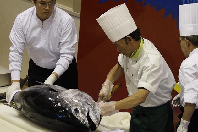 毎年恒例の大人気企画。近畿大学水産研究所の教員の解説付き。解体後、無料で試食していただけます。※数量限定、試食整理券配布(9:00~予定数終了まで)