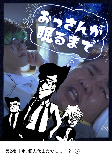 スランプ真っただ中のラノベ作家の語(A.rik)は、とある事故により入院することに。だが、同室のおっさん・鉄五郎(堤下敦)がうなされてなかなか寝付けず、鉄五郎のリクエストにより毎晩おっさんが眠るまで即興で物語を聞かせる羽目に… 映画監督・モーショングラフィッカーの松尾豪が贈る、ちょっとヘンテコ、でもほっこりとする凸凹コンビの物語をお楽しみください。