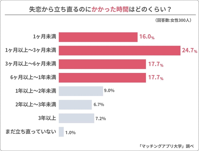 まずは、失恋を経験した300人の皆さんに、失恋から立ち直るまでにかかった時間を聞きました。